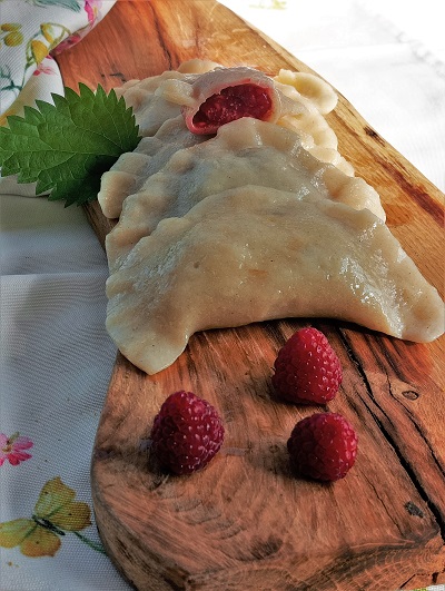 Pierogi z mąki orkiszowej z malinami